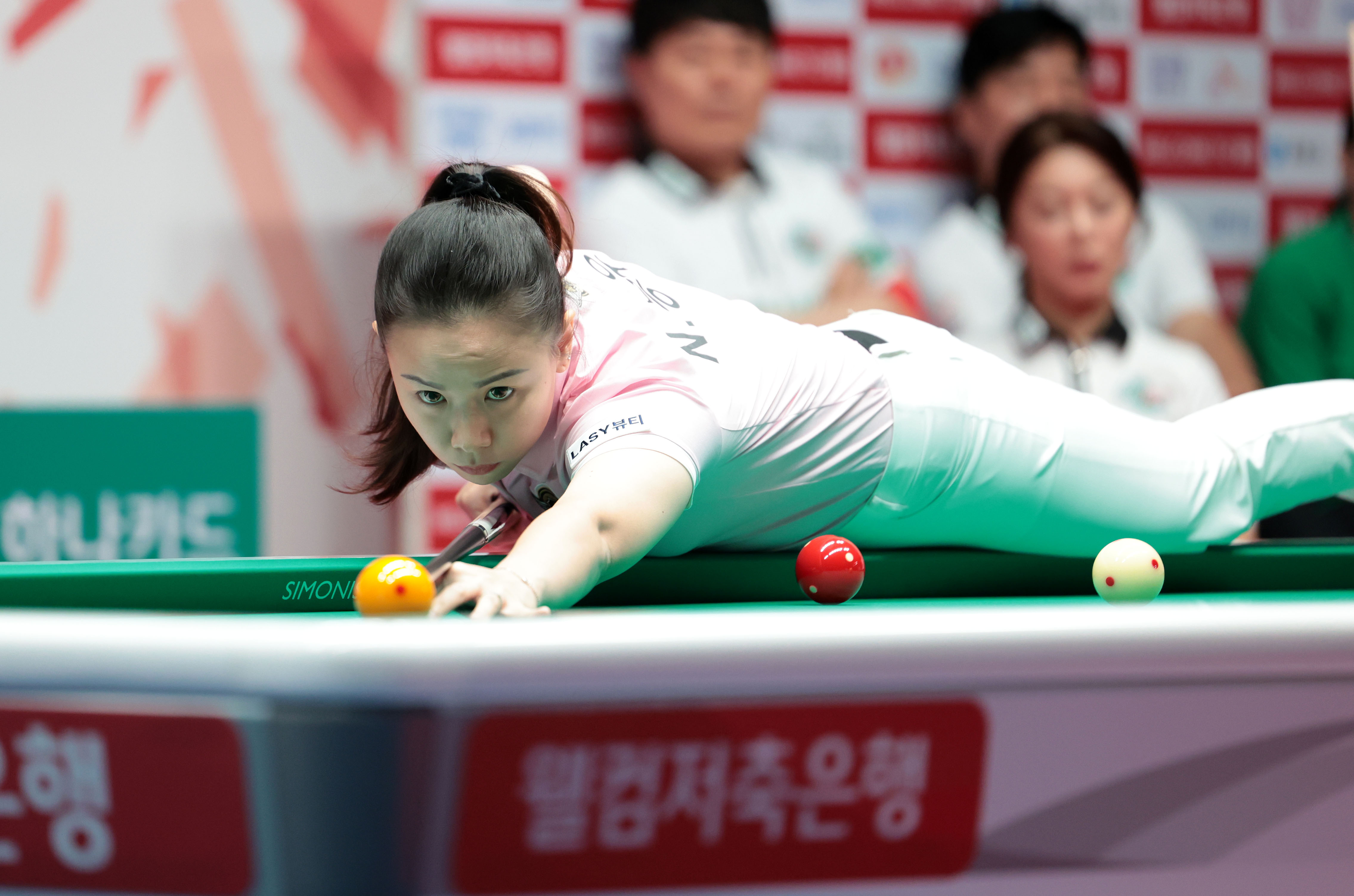 이번 시즌 LPBA에 도전장을 던진 박정현은 개막전 이후 2개 투어 연속 첫 경기에서 고배를 마셨다. 그러나 3차 투어(‘올바른 생활카드 NH농협카드 채리티 챔피언십’)에서 LPBA 데뷔 승리를 거둔 데 이어 8강까지 오르는 등 빠르게 적응을 마쳤다.